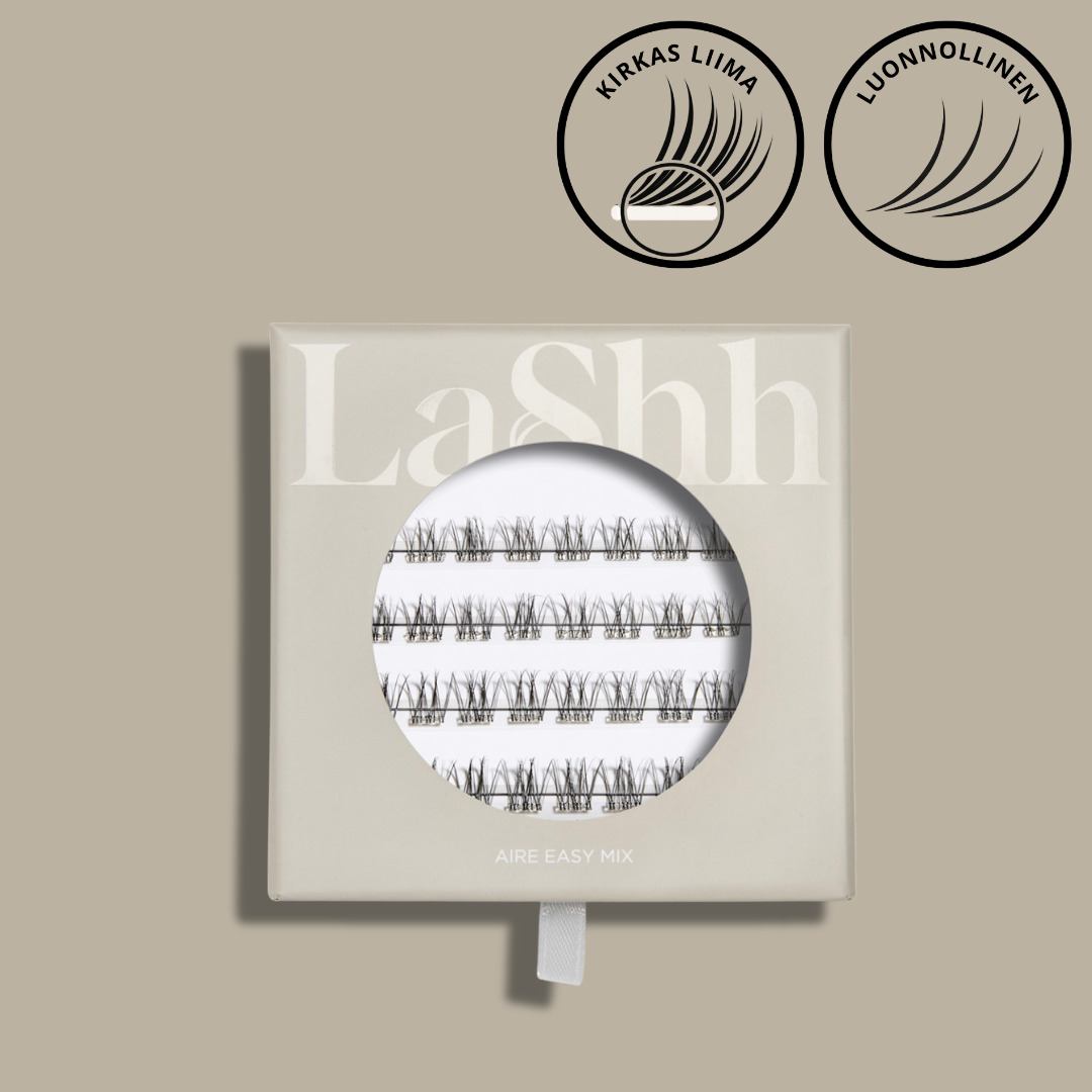 llmava AIRE on suosituin mallimme, johon ovat rakastuneet hekin jotka eivät koskaan kuvitelleet käyttävänsä lisäripsiä. Jo muutamalla palalla ulkonurkassa saat kevyttä, luonnollista tuuheutta ja avaramman katseen. AIRE sopii myös hennoille ja harvoille ripsille – vaikka päivittäiseen käyttöön! MIX -pakkauksessa 16 kpl kumpaakin suosituinta pituutta – 10 mm & 12 mm. Jos käytät tummaa rajausta tai luomiväriä, valitse AIRE mustalla liimalla.