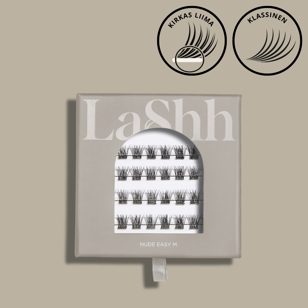 NUDE on luonnollisen tuuhea ja klassinen malli, joka on monella korvannut ripsipidennyksien tarpeen. Se täydentää ripsiriviä ja tuo ilmeeseen ryhtiä, sekä luonnollista näyttävyyttä. NUDE 12 mm ripsipalat ulkonurkassa tuovat tuuheutta ja pituutta avartaen katsetta kauniisti.