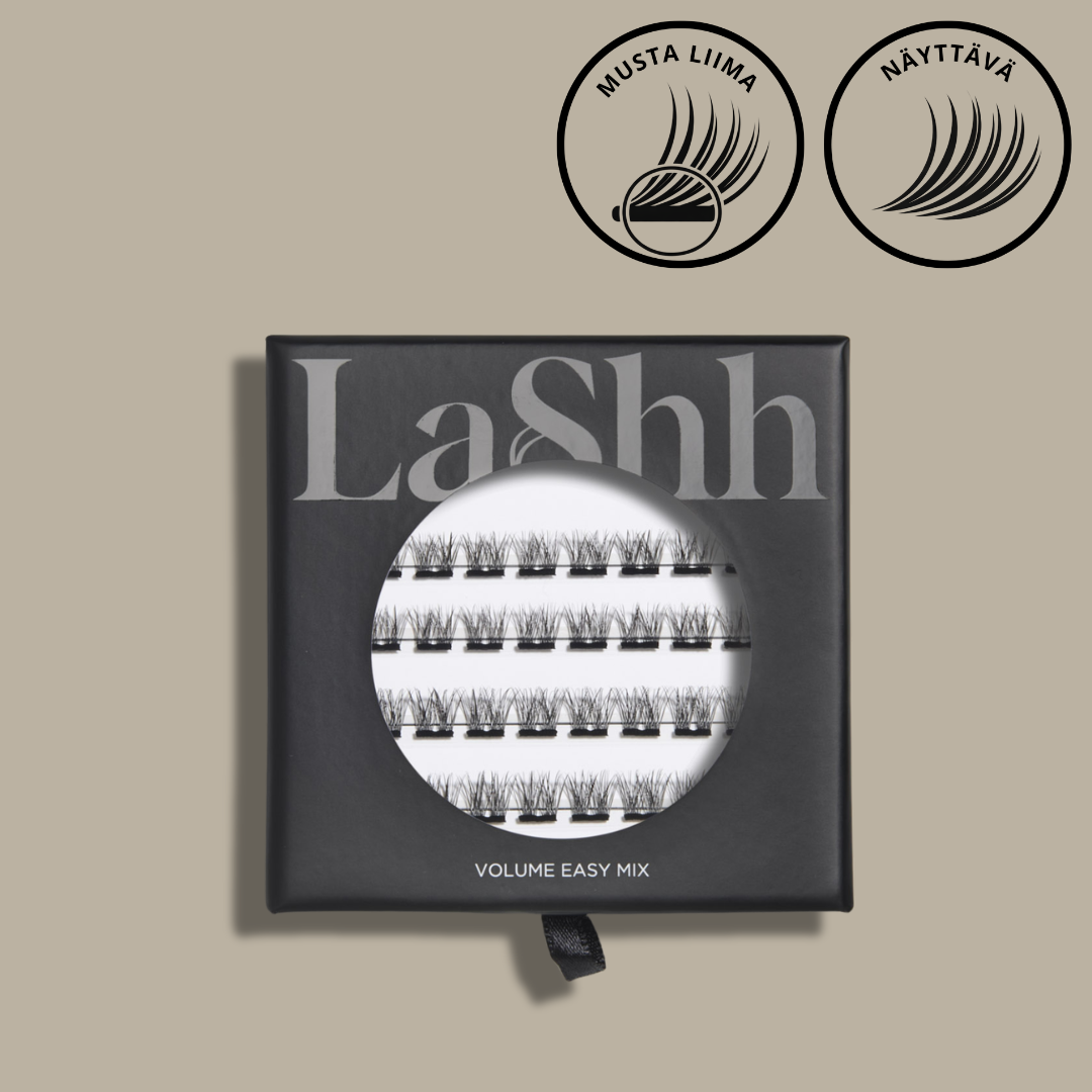 Näyttävä VOLUME-malli on sinulle, joka kaipaat tuuheita ripsiä. VOLUME sopii täydellisesti silloin, kun haluat silmämeikkiin intensiteettiä. Musta liima tekee ripsien tyvestä tummemman ja luo rajauksenomaisen efektin. MIX -pakkauksessa 16 kpl kumpaakin suosituinta pituutta – 10 mm & 12 mm.